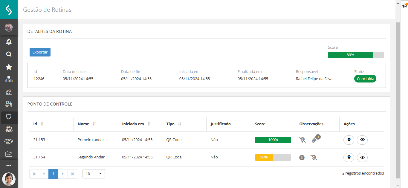 rotinas executadas com sucesso, com padronização e rastreabilidade.