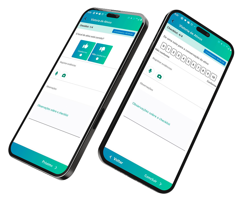 A solução é compatível com dispositivos móveis que utilizam os sistemas operacionais Android, a partir da versão 9, e iOS, a partir da versão 12. Isso permite uma implementação flexível, garantindo que os checklists digitais possam ser utilizados por uma ampla variedade de dispositivos no ambiente de trabalho.